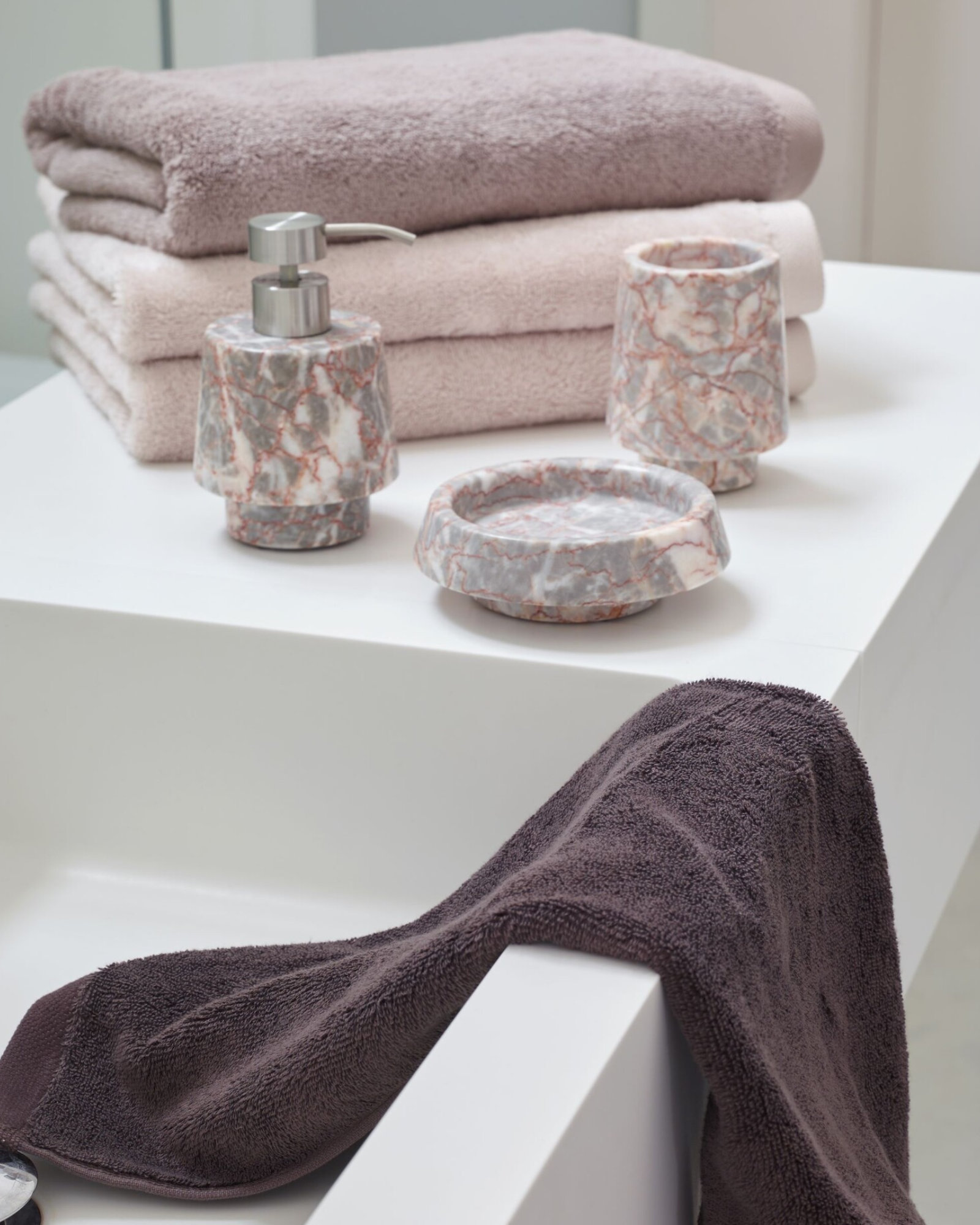 Faites en sorte que votre salle de bains respire la paix, le confort et la détente avec cette magnifique gamme de linge de bain et d'accessoires.