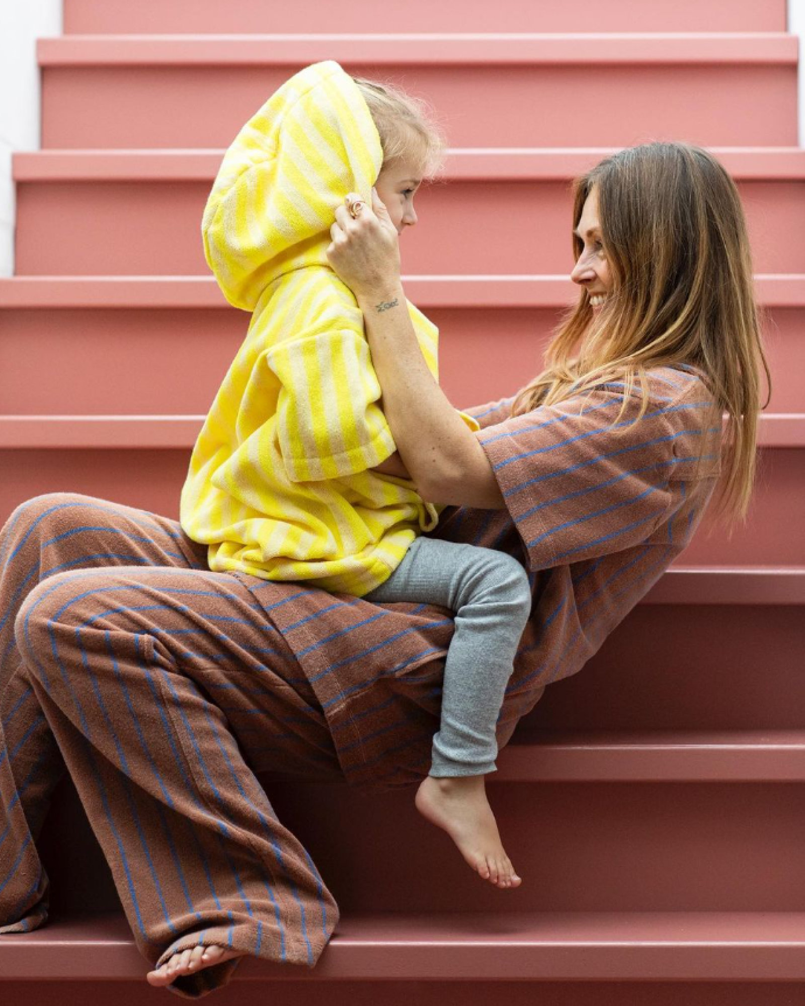 Le Poncho Naram est fabriqué en coton peigné (qualité 385 g/m²), qui est très épais, très doux et a une capacité d'absorption supérieure.